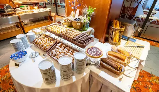 هر روز صبح، صبحانهی بوفه کامل در رستوران Brasserie Erte سرو میشود. همچنین، غذاهای سنتی روسی نیز در این رستوران ارائه میگردد. مهمانان میتوانند در بار لابی استراحت کنند.