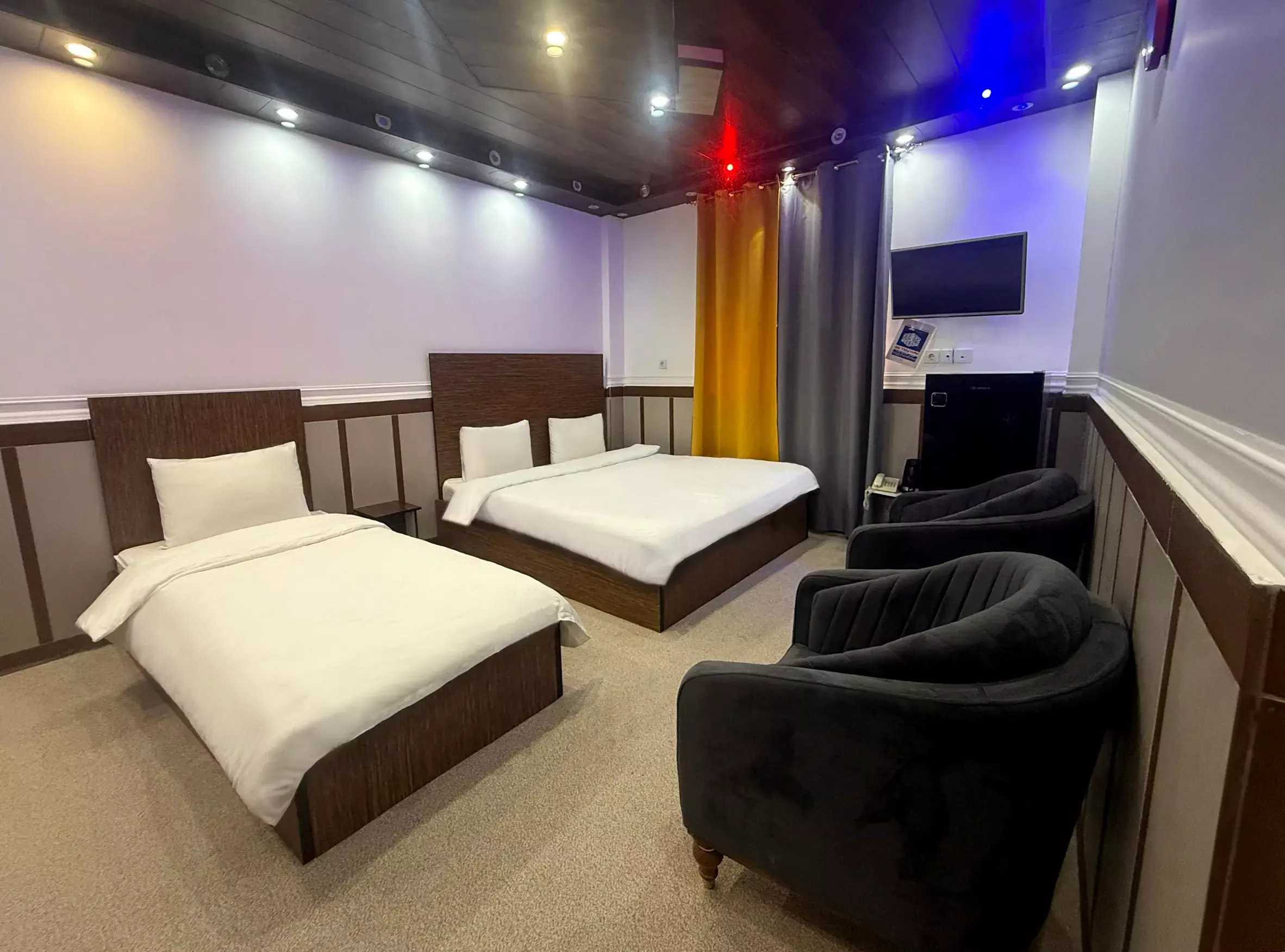 سیستم تهویه مطبوع، مبلمان، تلویزیون، اسپلیت، چایساز، یخچال، مینیبار و سرویس بهداشتی ایرانی از جمله امکانات اتاقها هستند.