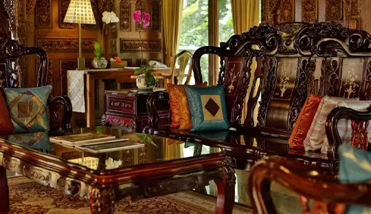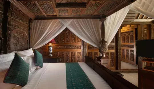 هر اتاق با الهام از بالی دارای بالکن خصوصی مشرف به باغ است. اتاقهای دارای تهویه مطبوع با وسایل چوبی و کفپوش مرمر مبله شدهاند. آنها دارای تلویزیون صفحه تخت ماهواره ای هستند. حمام خصوصی مجهز به لوازم بهداشتی رایگان، امکانات حمام و دوش دارد.