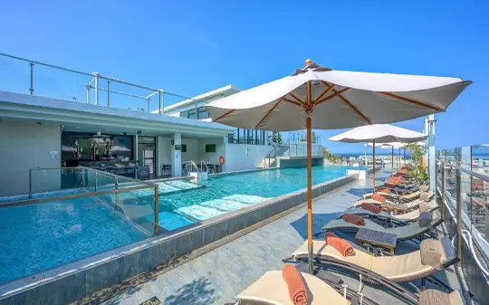 بار استخر The Sea Cliff : این رستوران در کنار استخر و جکوزی در طبقه ششم با منظره شهر و دریا حس آرامش را به شما می بخشد و انواع تنقلات سبک و نوشیدنیهای تازه و فصلی سرو میکند.