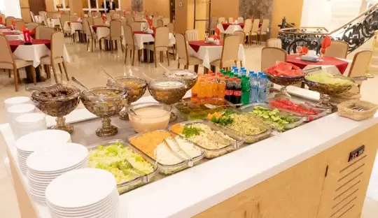 این هتل دارای یک رستوران با ظرفیت 250 نفر است که شما در طول اقامت میتوانید برای وعدههای صبحانه، ناهار و شام از آن است استفاده کنید.